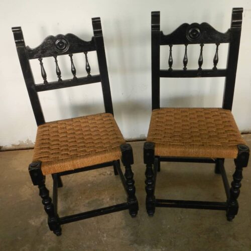 Coppia sedie in legno intarsiato 1950