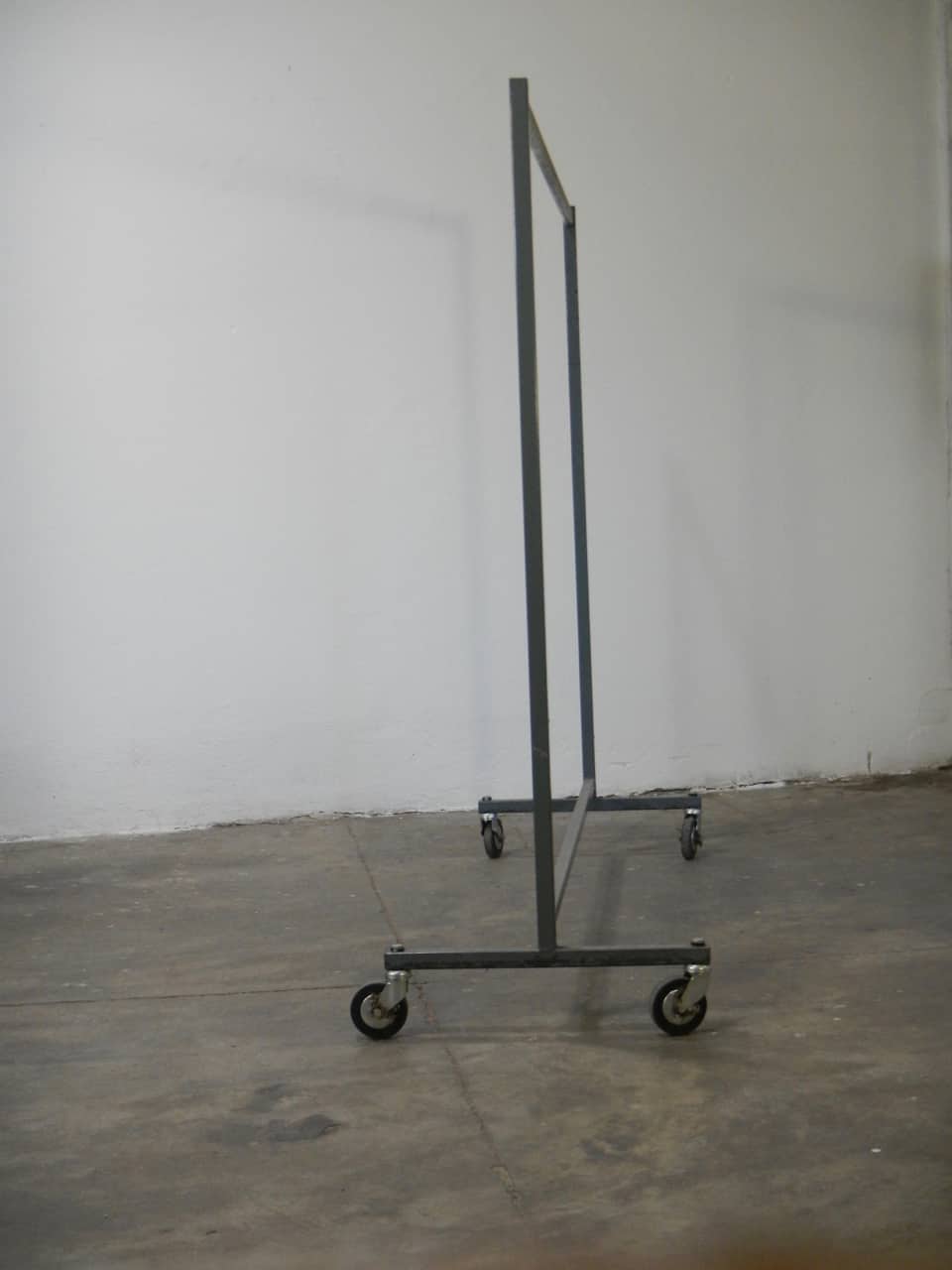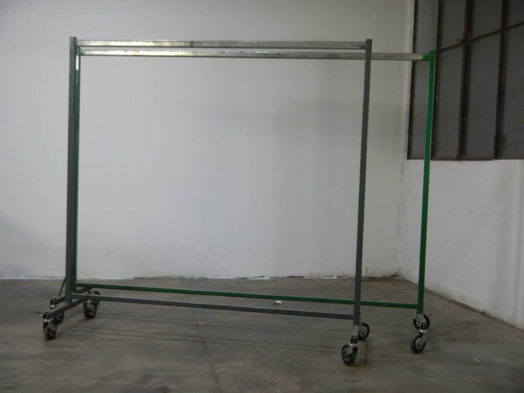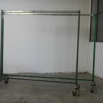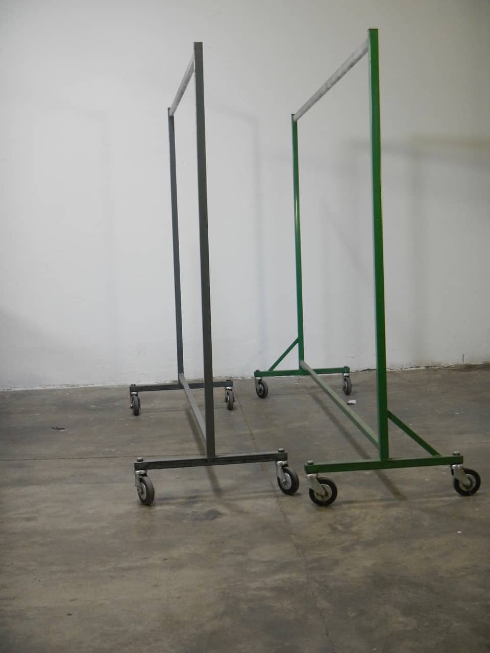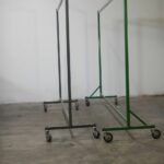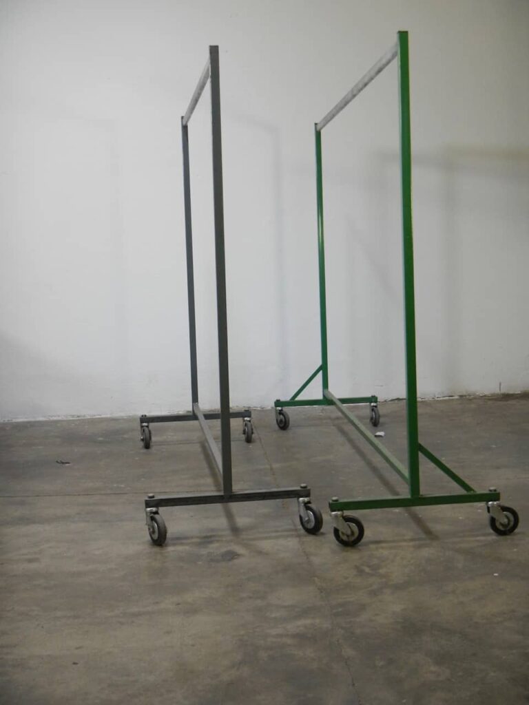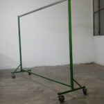 Informazioni sull'acquistoAppenderia stand vintage industriale anni ’70 in tubo quadrato in ferro, verniciato di verde, con ruote funzionanti. Disponibile PZ 2 H160 206 x 55 KG23