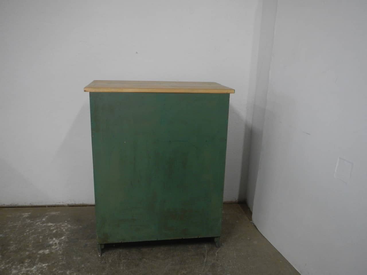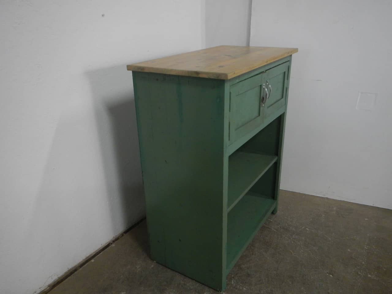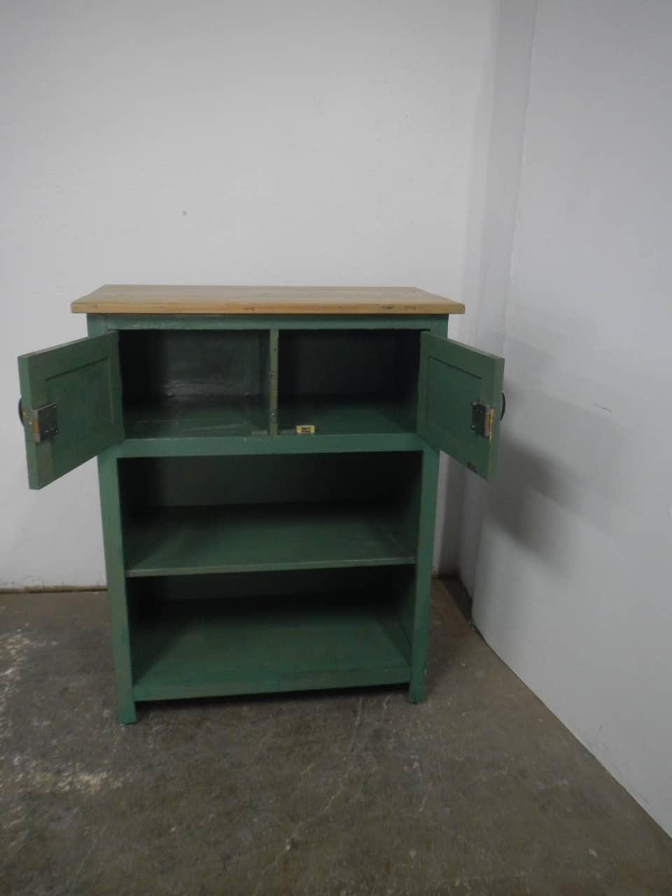 Informazioni sull'acquistoArmadietto in legno di abete colorato verde con 2 porte piccole che chiudono due scomparti di cm 38×43 e due mensole di cm 78×43.