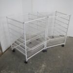 Informazioni sull'acquistoCarrello per esposizione articoli in rete metallica bianca dotato di 2 ceste a cassetto grandi di cm 50×50 h18 e 3 piccole di cm50x50 h8. Ruote originali In buone condizioni Disponibili pz2 Prezzo x pezzo