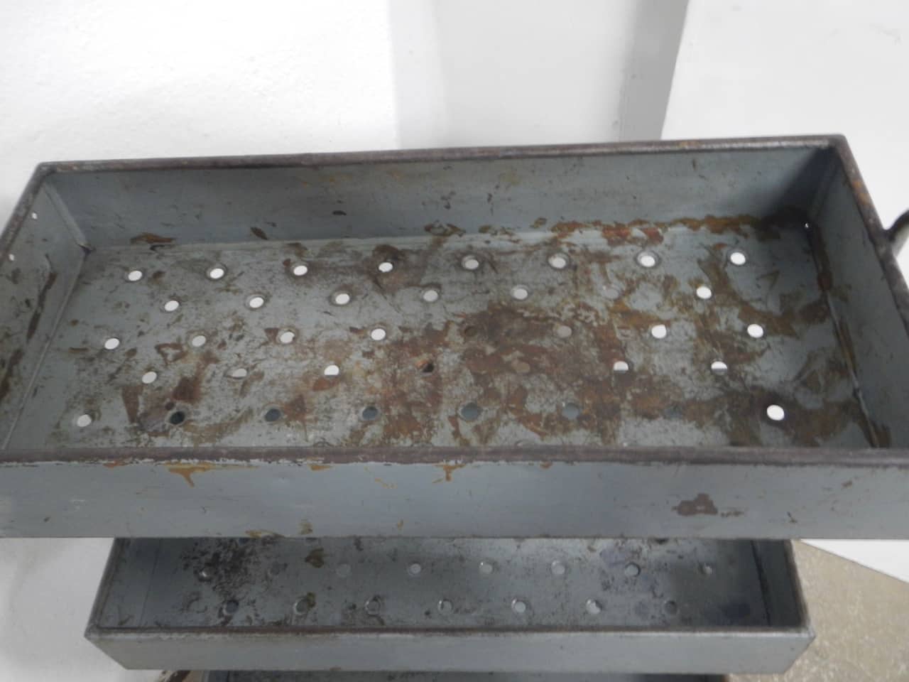 Informazioni sull'acquistoCarrello in ferro grigio con vasche con fori contenitore alte cm 12 Ruote originali a manici per spostamento. Adatto com portafiori