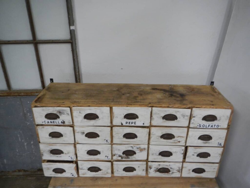 Informazioni sull'acquistoCassettiera da merceria con 20 cassetti il legno di abete naturale e colorato bianco. Con alcune scritte in metallo. In buone condizioni. Restaurato con patina naturale