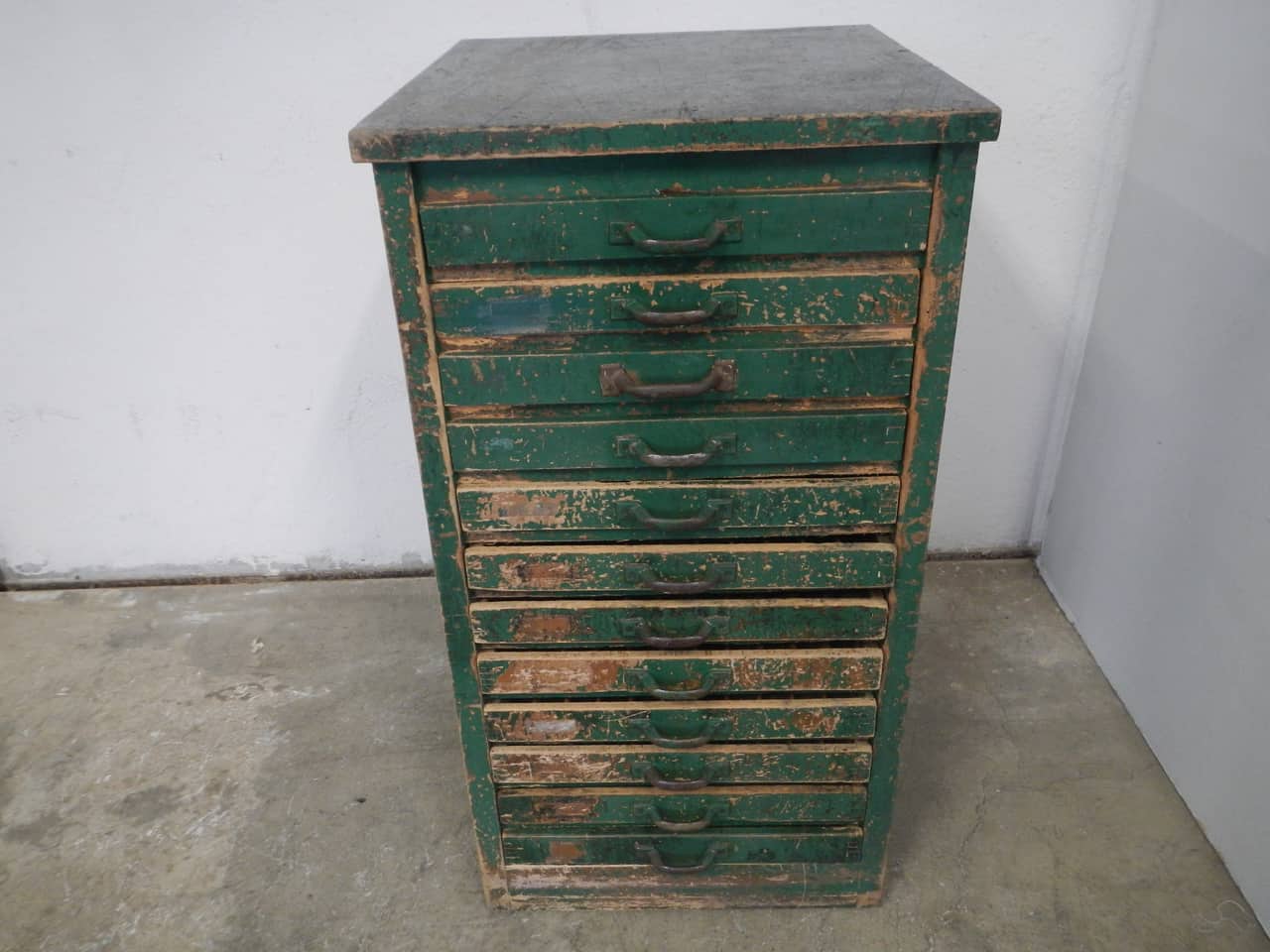 Pulita e cerata con 12 cassetti usati per riporre i caratteri x la stampa.