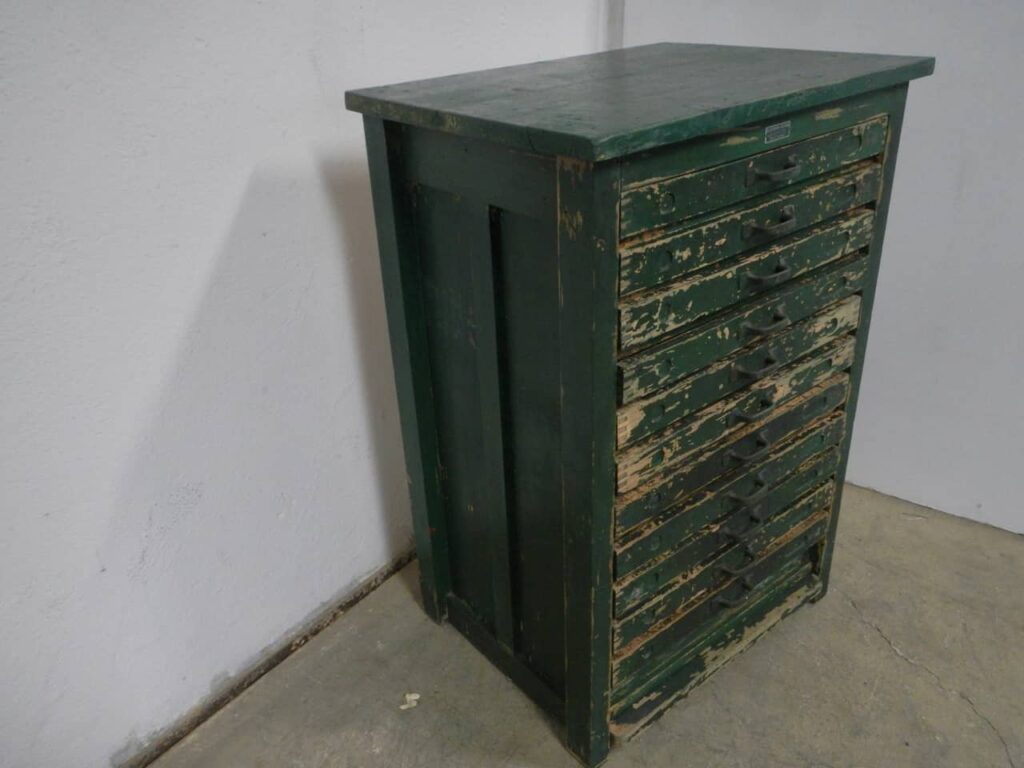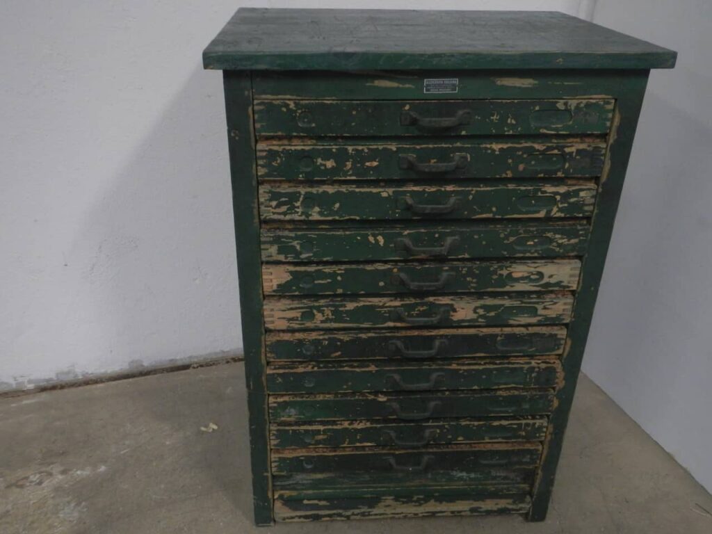 in legno di abete e faggio, ditta Xilografia Italiana con 11 cassetti usati per riporre i caratteri x la stampa.