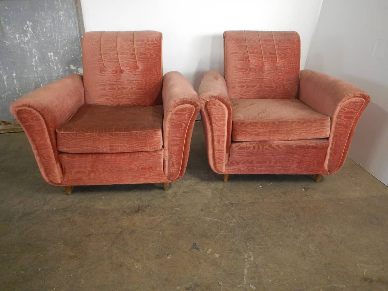 Coppia poltrone in velluto salmone . Buona la