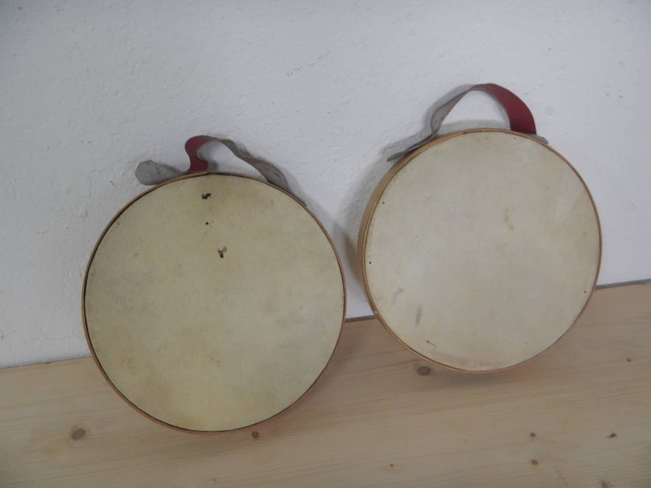 Coppia tamburelli Marchio Olimpia in legno di faggio curvato e rivestimento in pelle e maniglie.