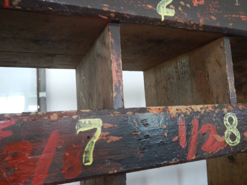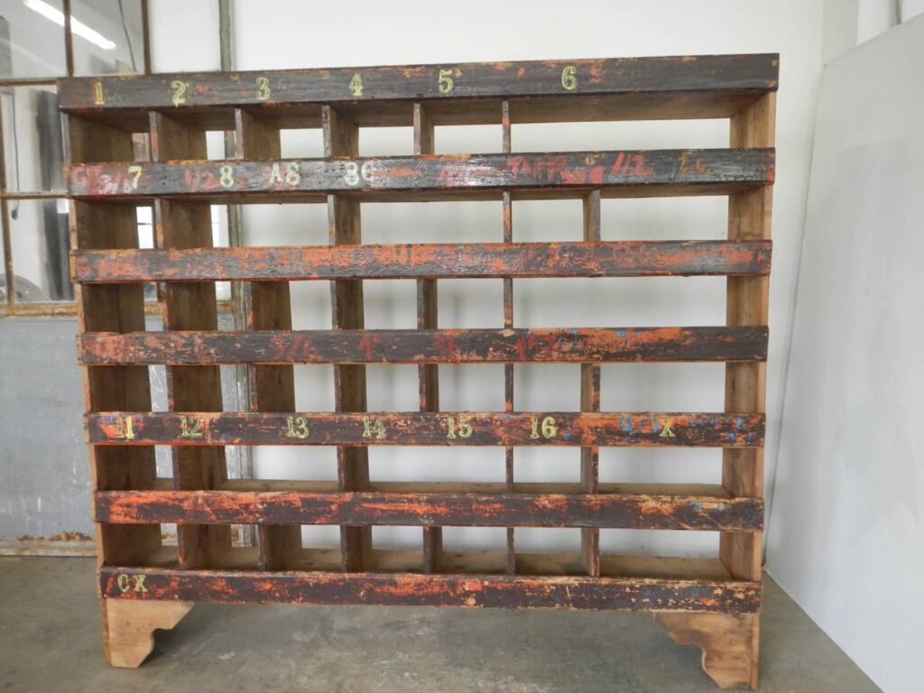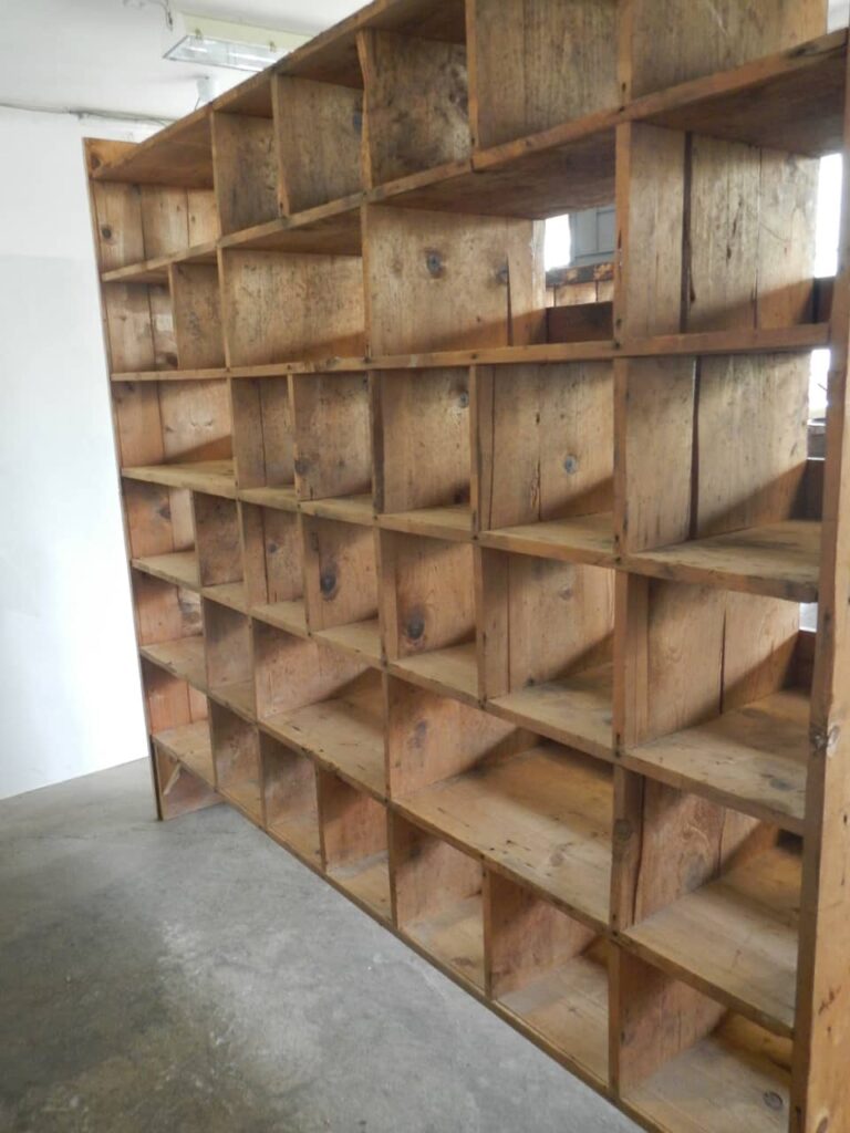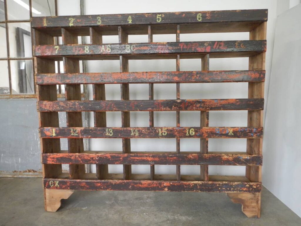 Informazioni sull'acquistoScaffale industriale in legno di abete. Pulito e restaurato.