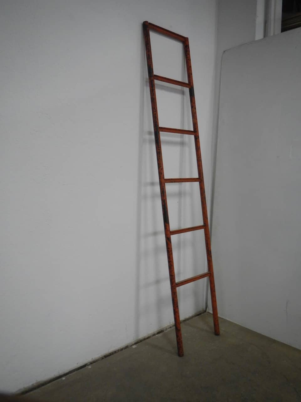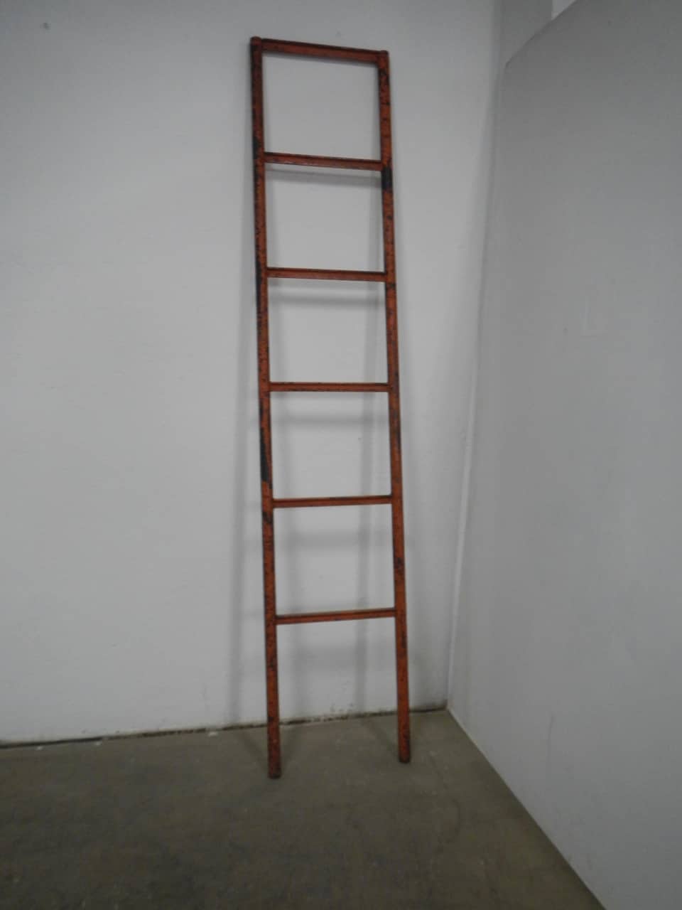 Informazioni sull'acquistoScala in ferro colorato arancio con 5 pioli in buone condizioni. Pulita e trattata con cera e vernice da ferro