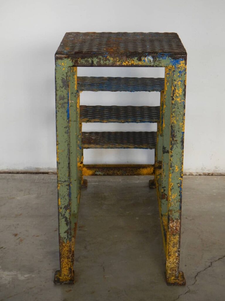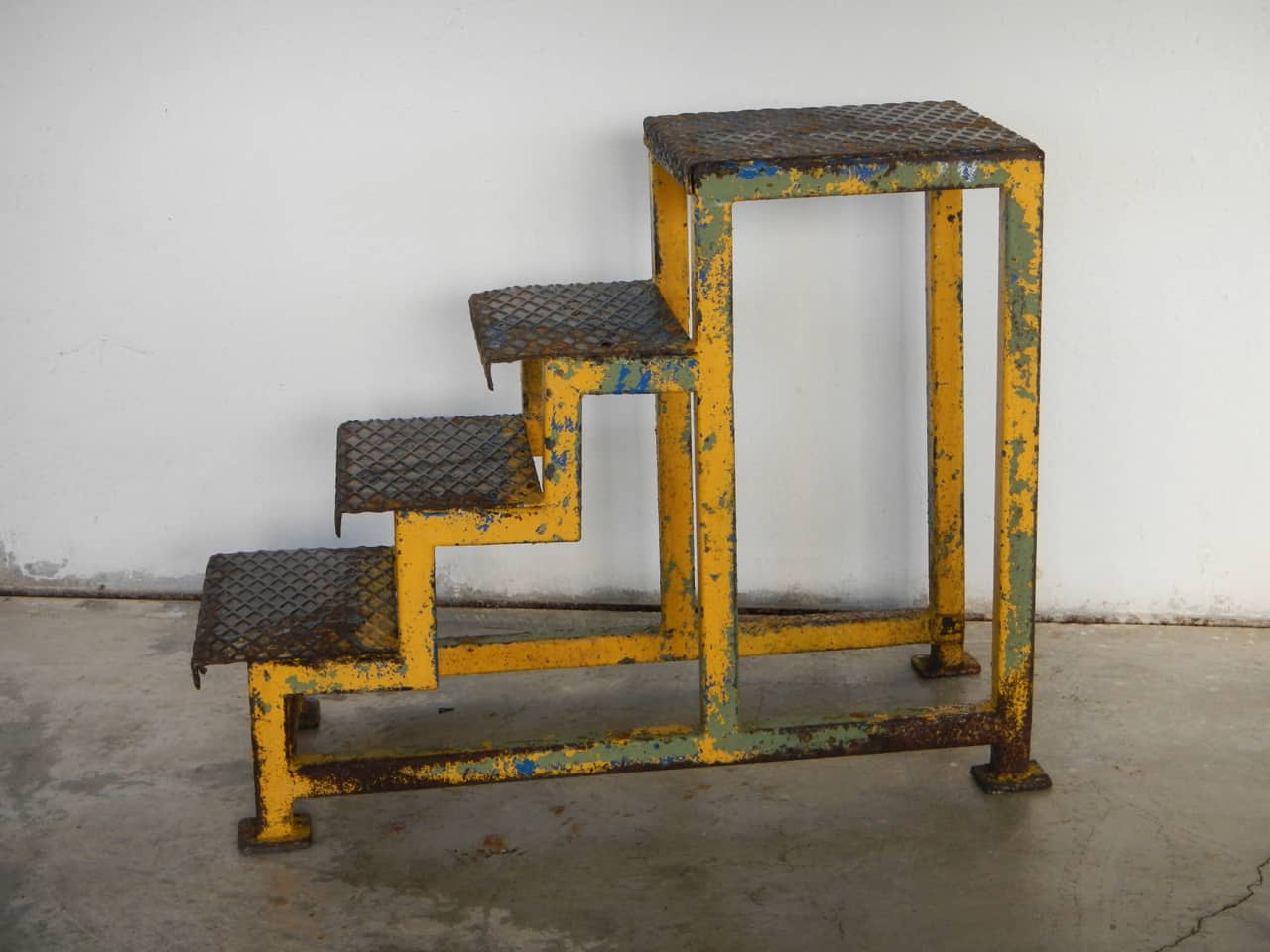 Informazioni sull'acquistoScaletta industriale in ferro a 4 livelli Pulita e trattata con Vernice da ferro e cera.