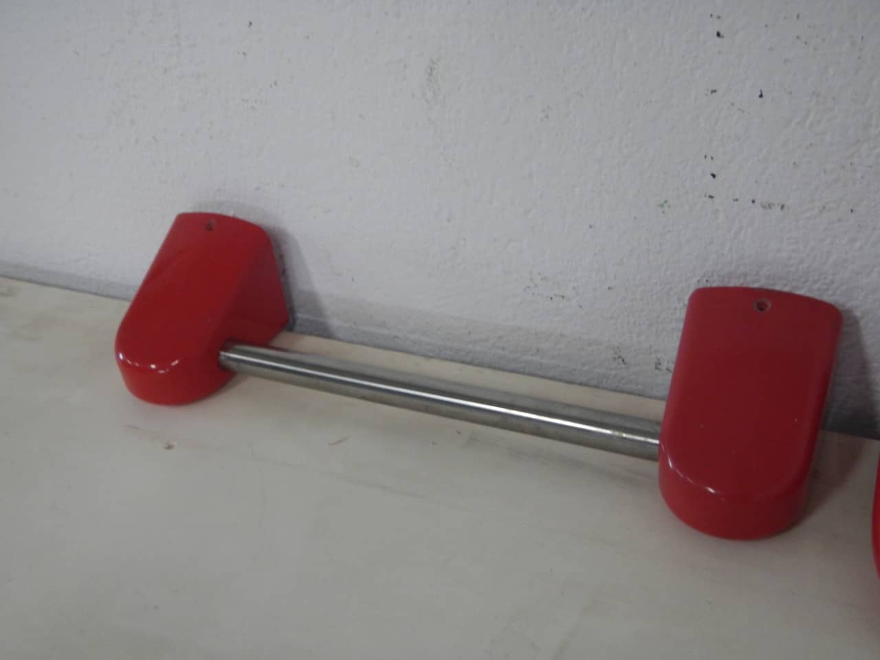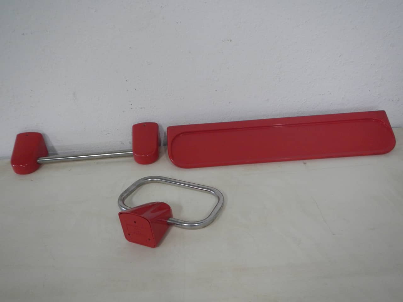 Set da bagno prodotto da GEDY design Mario Hasuike in plastica rossa e metallo composto