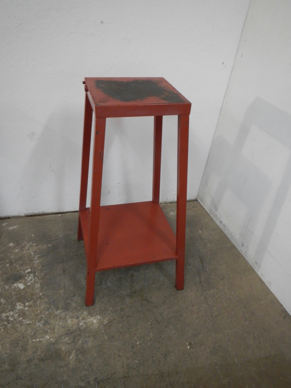 Cavalletto con basi di appoggio in ferro colorato rosso adatta come accessorio da giardino. Di forma piramidale con base di appoggio superiore di cm 40×40 e inferiore di cm 53×53. La distanza tra basi è di cm 78. Trattato con vernice da ferro che lo rende liscio al tatto. In buone condizioni con segni d’uso.