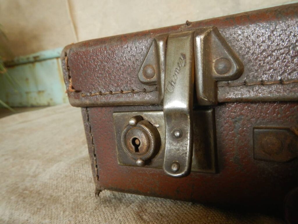 Informazioni sull'acquistoValigia Regno Unito Cheney in cartone e similpelle.Accessori in ottone Buone condizioni con segni d’uso
